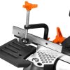 • Miter 45 degrees in either direction (featuring 9 miter stops) or bevel 45 degrees to the left